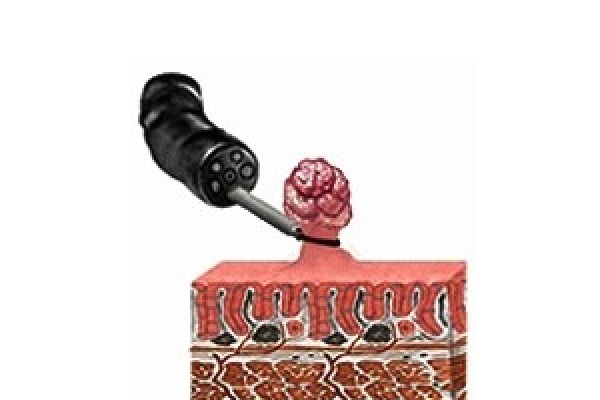 용종이 점막에서 줄기를 갖고 튀어나온 경우에는 올가미 형태의 절단기를 이용하여 제거합니다.